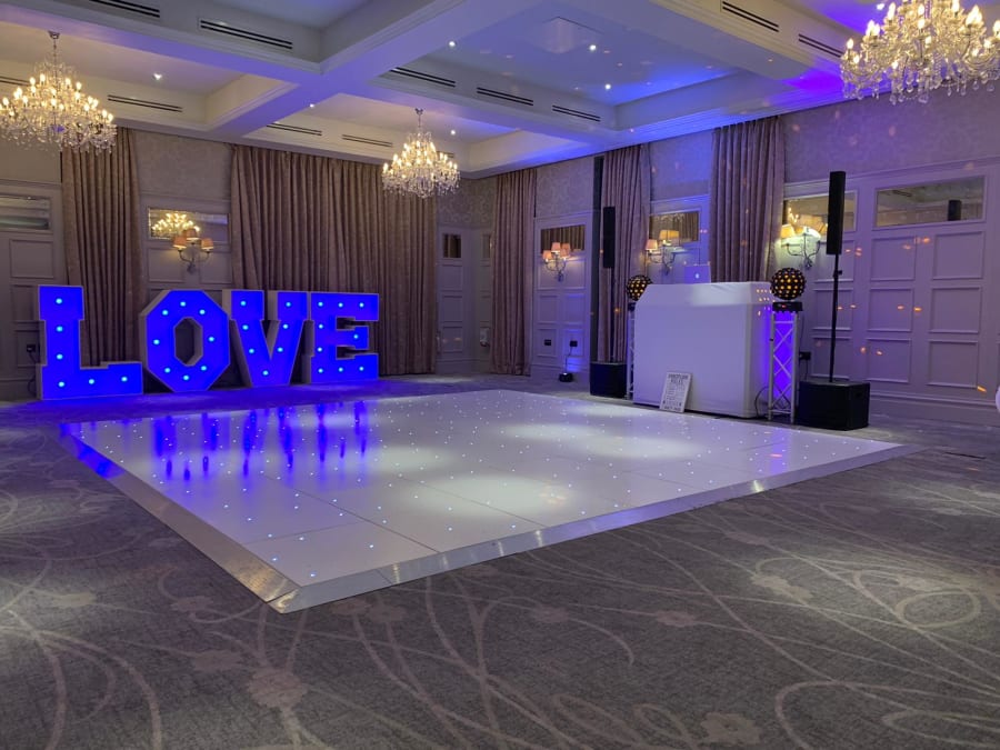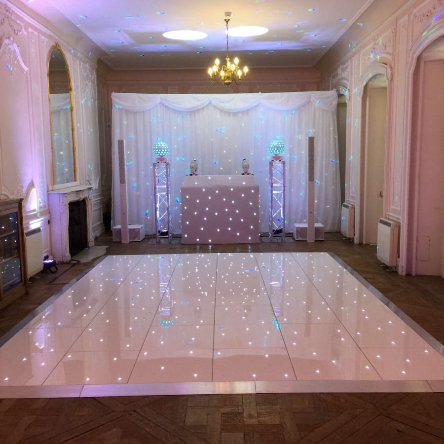 Elevate Your Event with Our Stunning 14ft x 14ft White Starlit Dance Floor