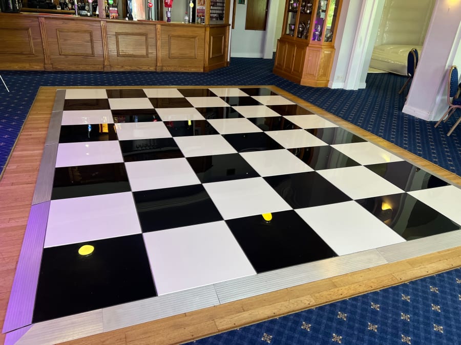 Transform your event into a timeless spectacle with our 12ft x 12ft Black and White Chequered Dance Floor! Perfect for birthdays, weddings, proms, and corporate events, this elegant dance floor is designed to captivate and inspire. With sizes up to 16ft x 16ft, it provides ample space for guests to dance the night away while protecting your venue’s flooring.