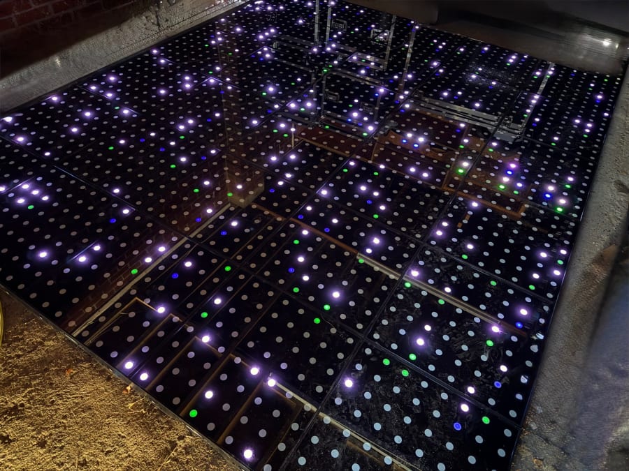 Our 3m x 3m Pixel LED Dance Floor is the perfect show-stopping addition to weddings, parties, private events, corporate functions, and more. This floor delivers a spectacular visual experience with programmable effects, vibrant colours, animated patterns and scrolling text — designed to elevate every moment.