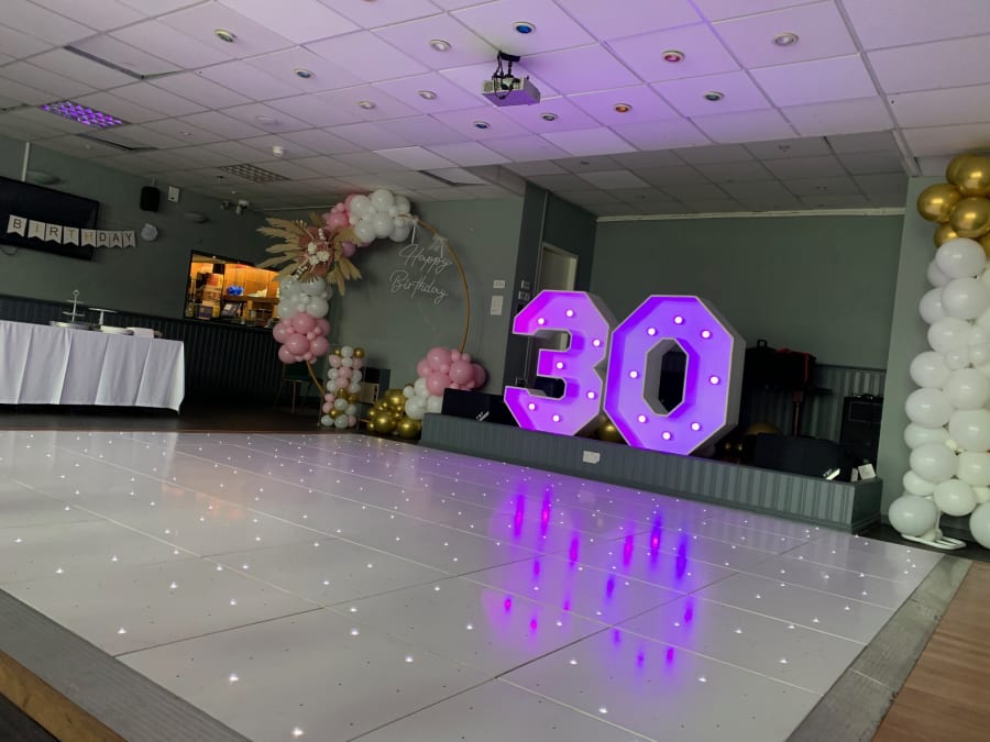 Transform your celebration into a spectacular event with our White LED Starlit Dance Floor—an unforgettable feature that your guests will love!