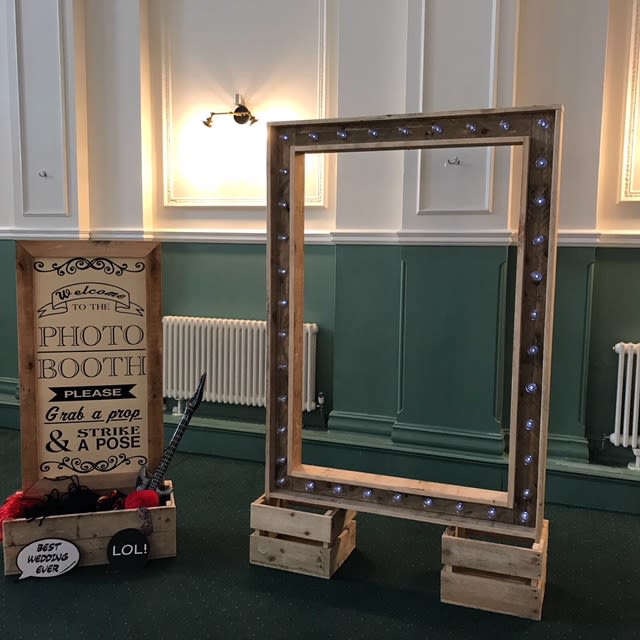 Our Rustic Photo Frame also comes with a rustic prop stand and a selection of charming props, allowing your guests to capture memorable moments in style. Perfect for adding a touch of personality and charm to your celebration.