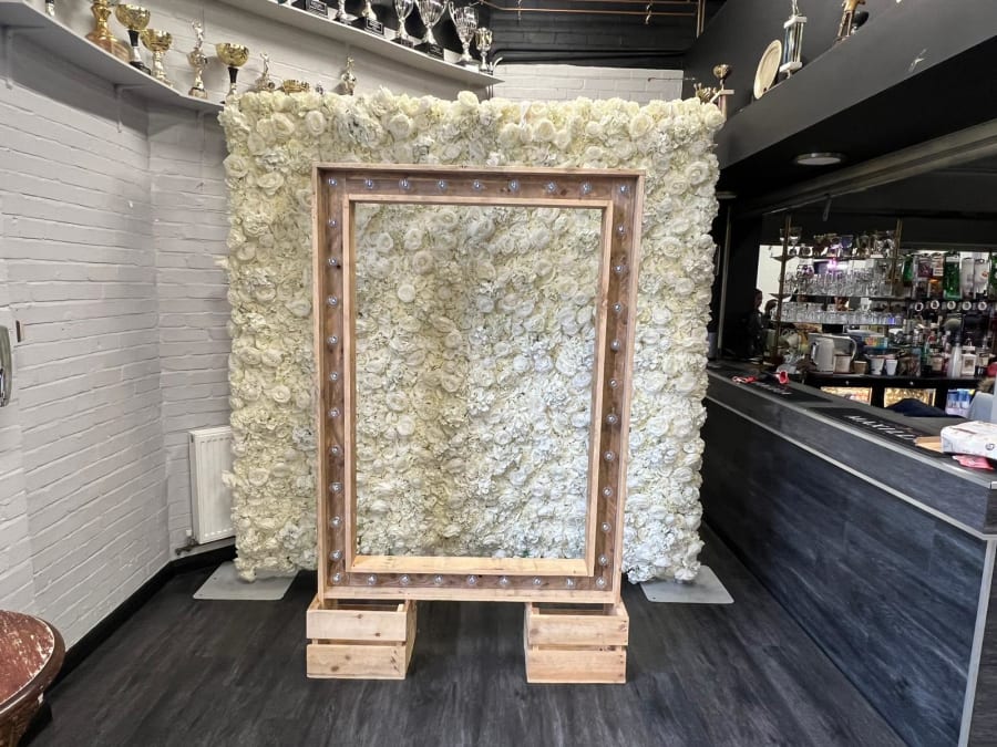 This stunning frame features lights that can switch between various modes, from bright to flashing at different speeds, creating a fun and dynamic display for your wedding or event.