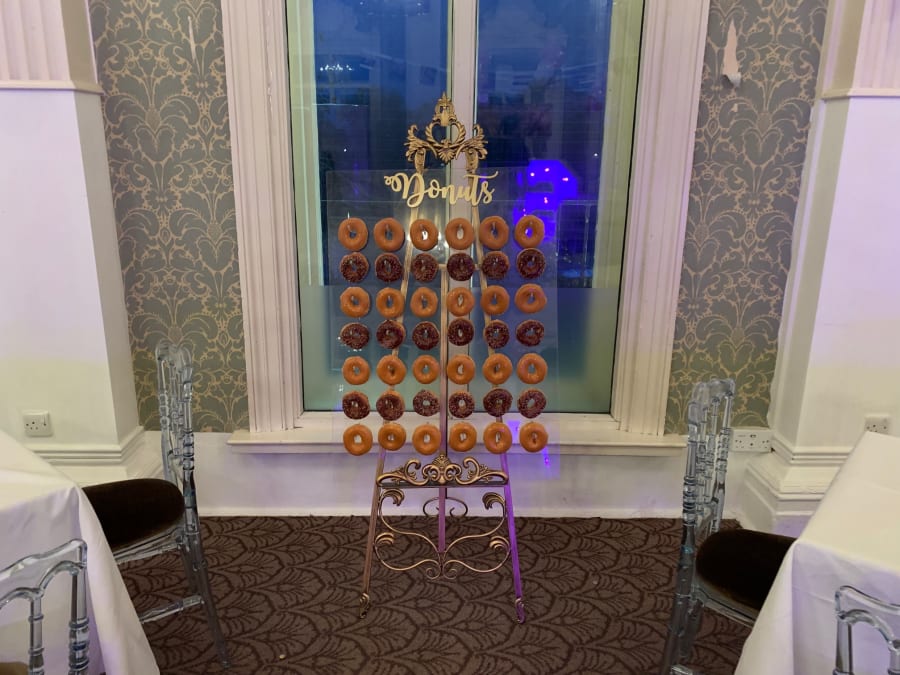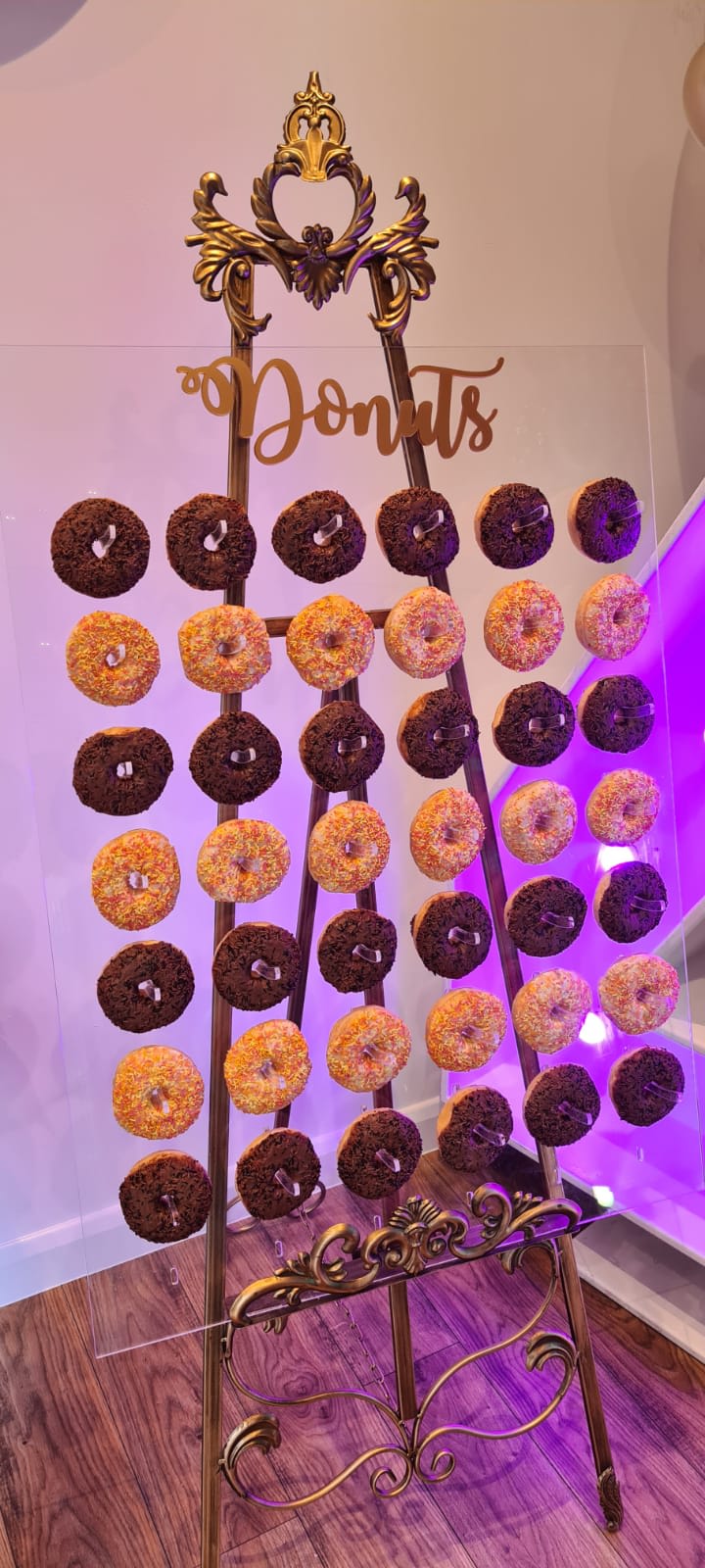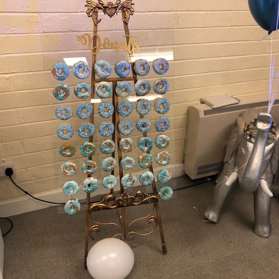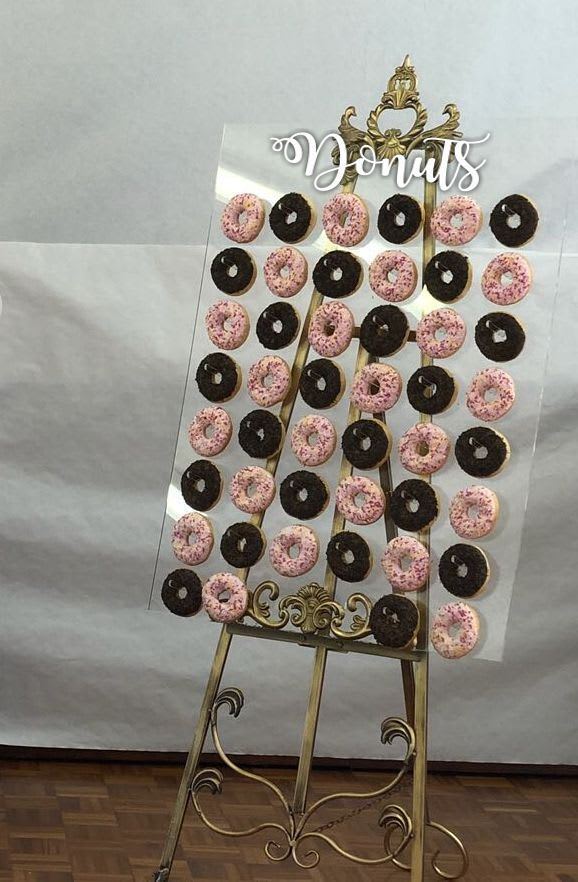 Make your event extra special with our super stylish Acrylic Doughnuts Wall, complete with a beautiful stand. The doughnut wall panel measures 950mm x 700mm and can hold 48 doughnuts, or 96 when double stacked on each hook—perfect for creating an eye-catching and delicious display!