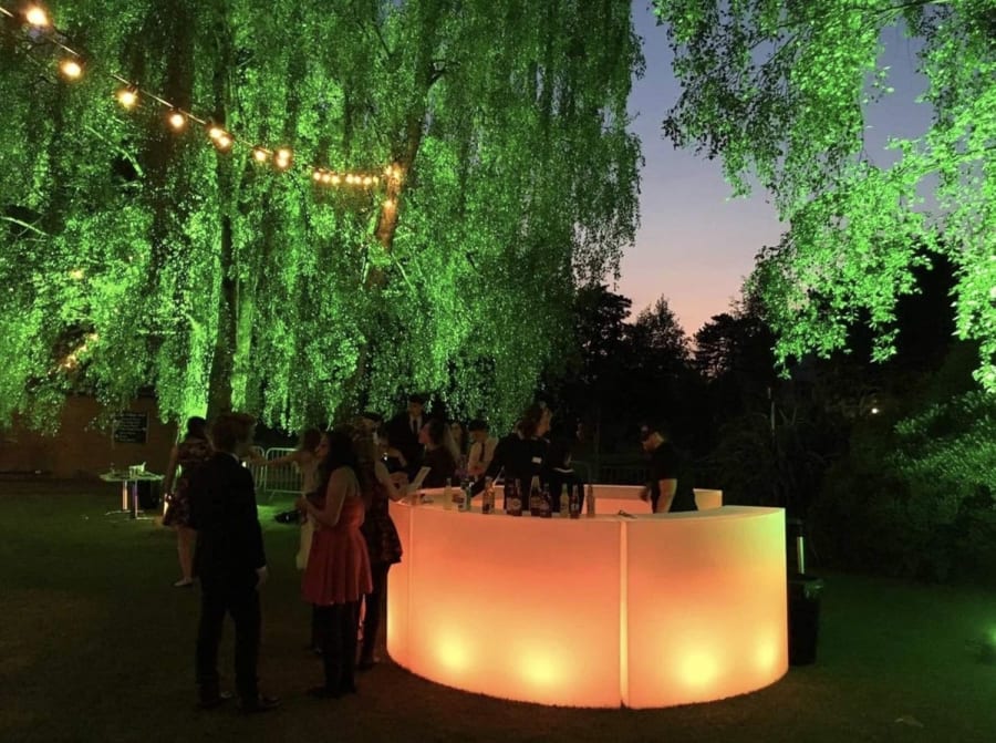 Our LED bar can be hired as a single curved section or combined with up to four pieces to create a stunning circular design, making a striking visual impact. Compliment your event’s theme with a range of colours and settings. Easily adjust the colour and brightness using user-friendly controls to create a vibrant atmosphere or a soft, elegant glow.