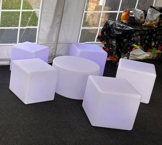 Our stylish LED Round Tables for hire are a great addition to any event space! Perfect for cocktail hours, receptions, and social gatherings, these illuminated tables not only provide a functional surface, but also enhance the ambiance of your space. Our illuminated tables come in a variety of colors, allowing you to create a stunning visual impact that complements your event's theme. Easily change the color and brightness to match your mood or theme with our user-friendly controls. Create a vibrant atmosphere or a soft, elegant glow.
