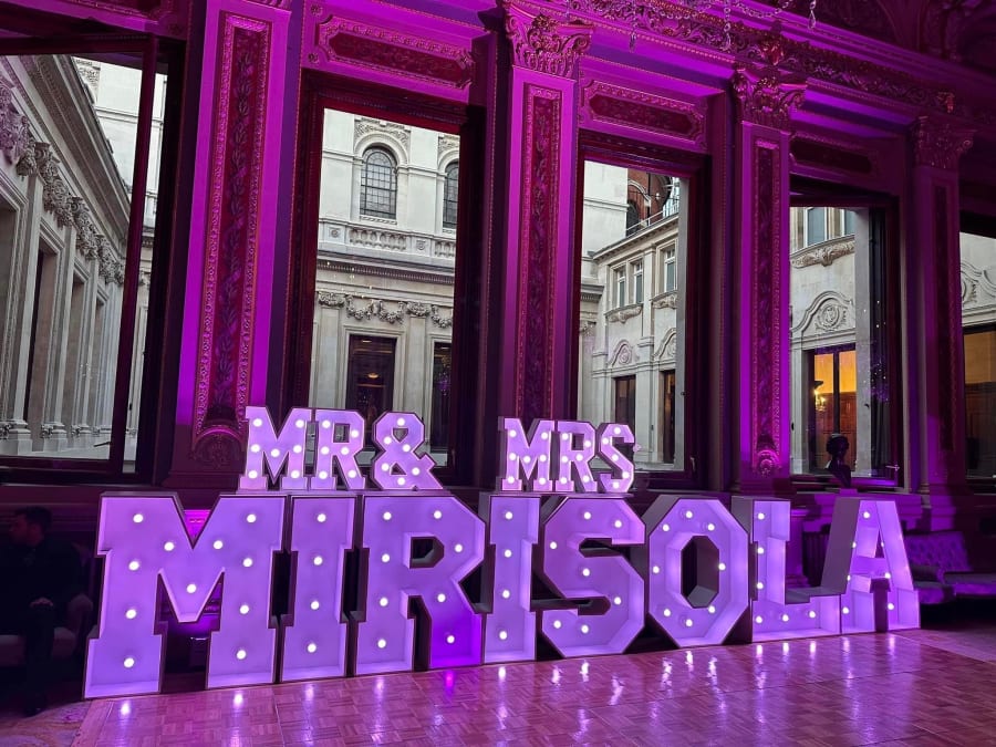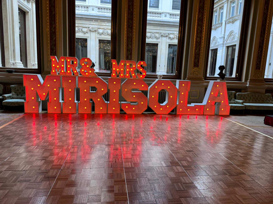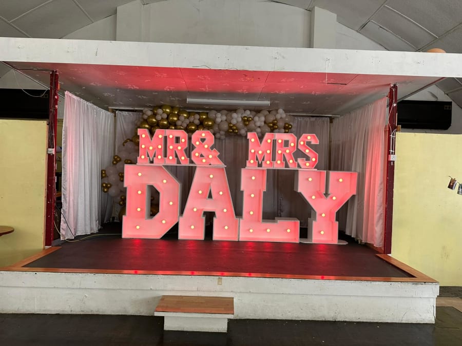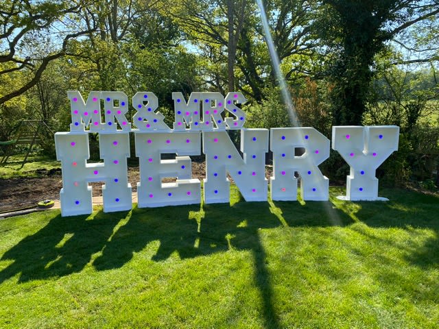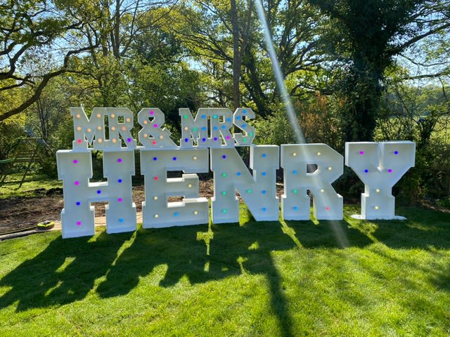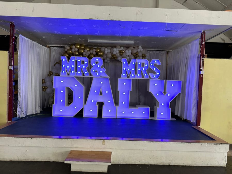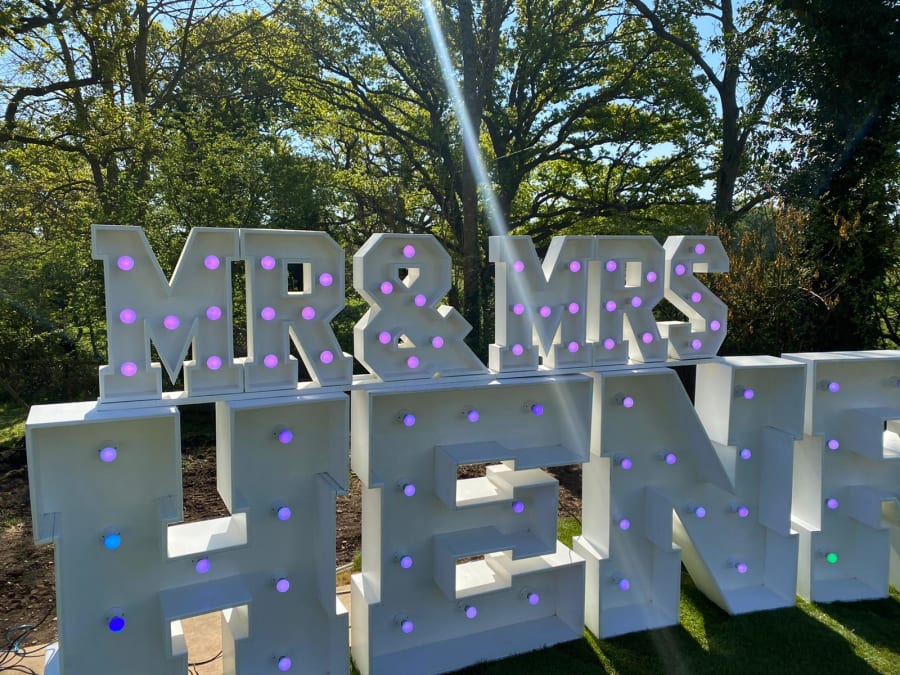 Our colour changing small Mr & Mrs letters topper is the perfect finishing touch to your wedding décor. Whether you place them on your top table or pair them with our stunning 4ft LED letters spelling your surname, these vibrant toppers will elevate the ambiance of your special day.