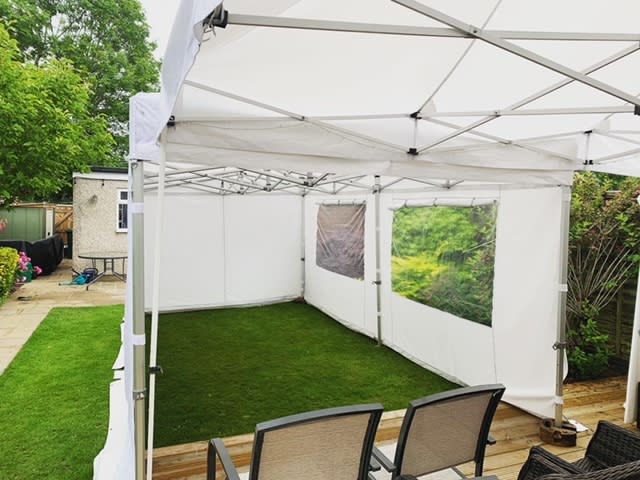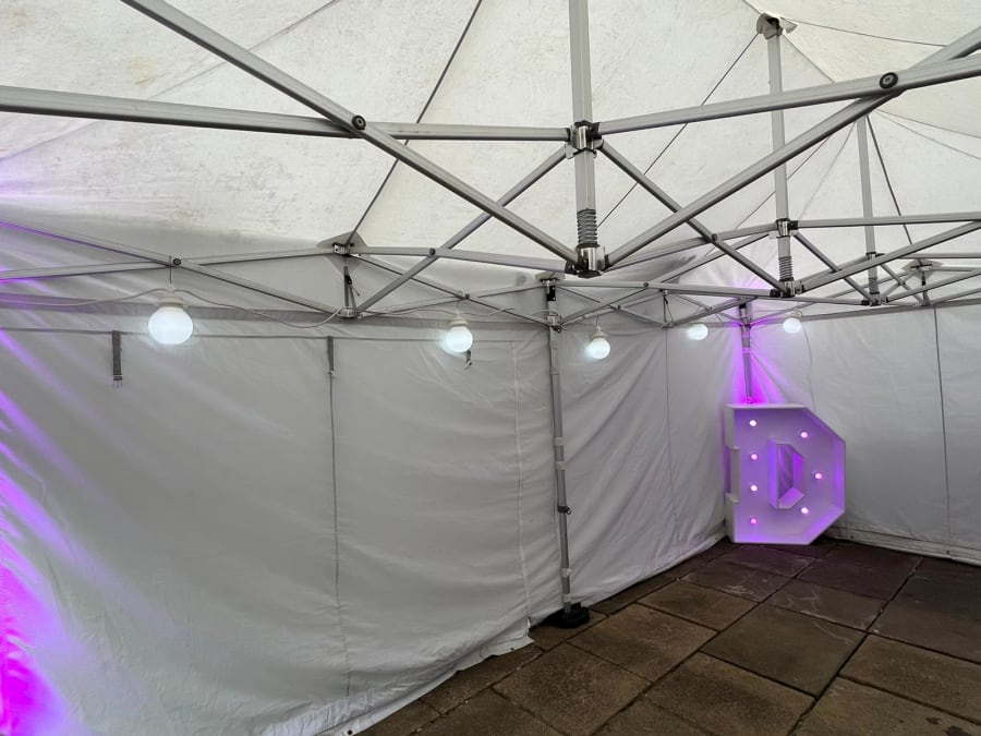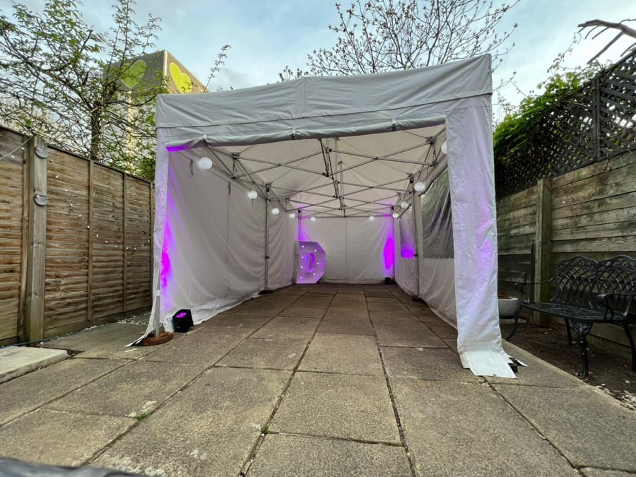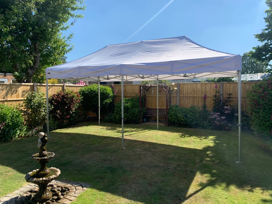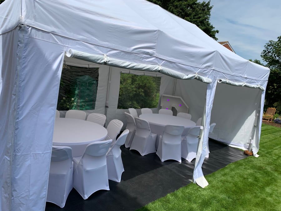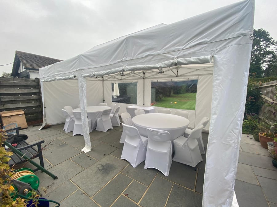 Our premium marquee is the ideal choice for intimate gatherings, outdoor parties, and events at home. Measuring 3m x 6m x 2m high (approx. 10ft x 20ft x 6.5ft high) with an external height of 3.28m, this marquee comfortably accommodates up to 30 people standing, providing a spacious and sheltered environment, with an external height of 3.28m.