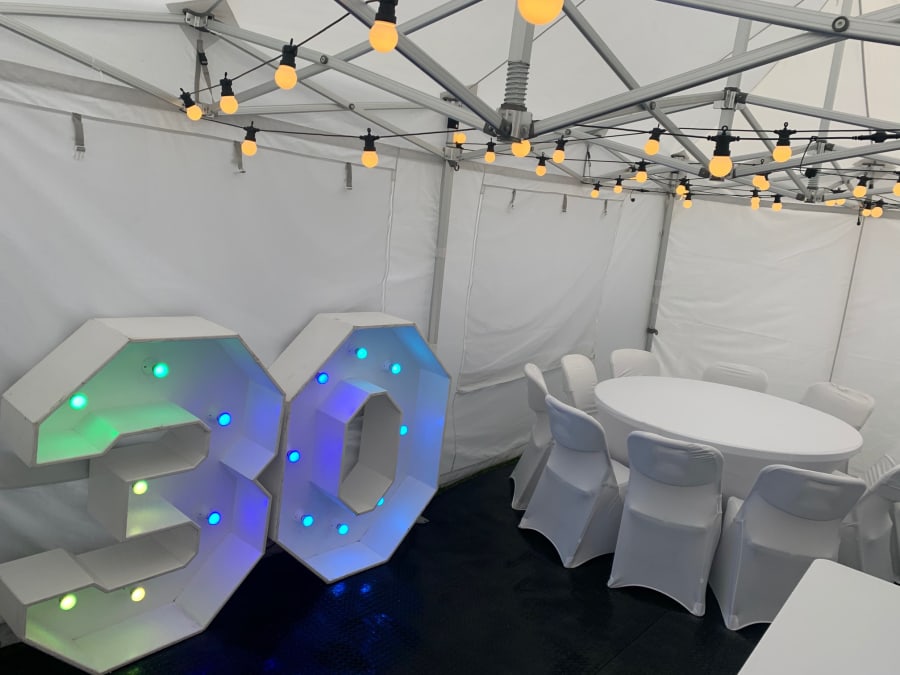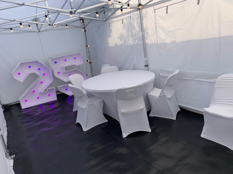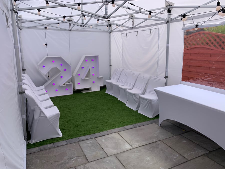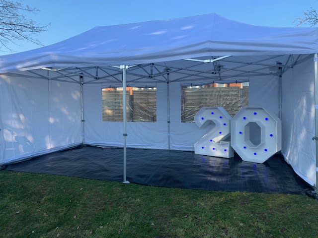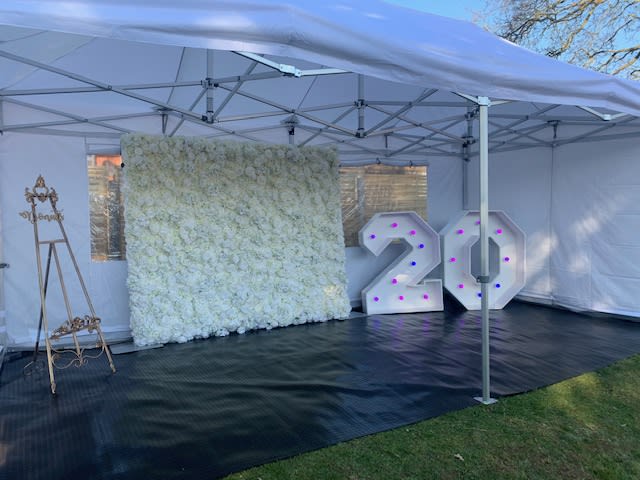 Lots of us will be celebrating our Birthdays at home with parties in the garden which is why we have created the Marquee birthday bundle, which includes our Premium Marquee with non slip rubber flooring, our 3D Ivory Flower Wall 8ft x 8ft, our GIANT LED Numbers and our Acrylic Donuts Wall and stand to match.
