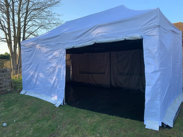 Our premium Marquee with lining and non-slip rubber flooring is perfect for those at home gatherings, measuring 3m x 6m x 2m high (approx 10ft x 20ft x 6.5ft high – External height 3.28m), ideal for around 20-30 people standing.