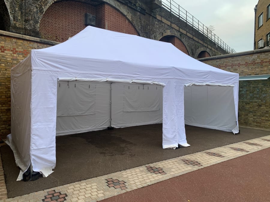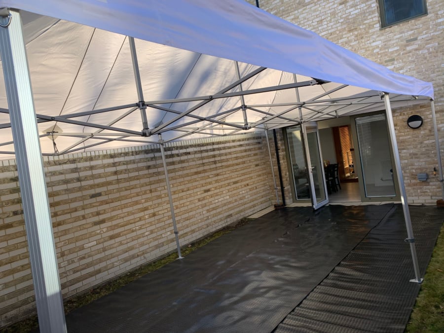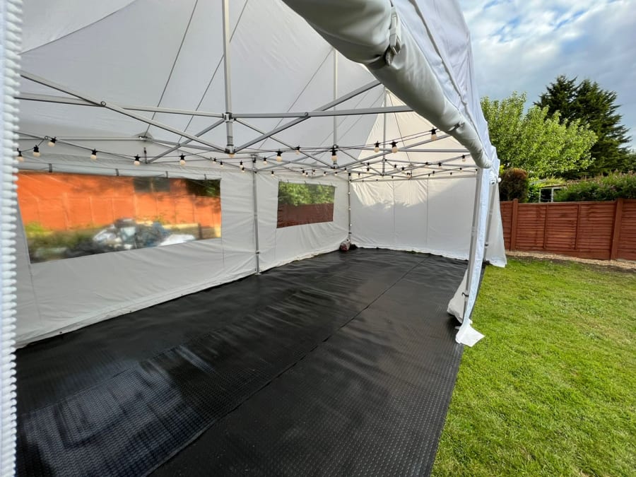Our premium marquee is the ideal choice for larger gatherings, outdoor parties, and events at home. Measuring 8m x 4m x 2.15m high (approx. 13ft x 26ft x 6.8ft high), this marquee comfortably accommodates up to 50 people standing, providing a spacious and sheltered environment. With an external height of 3.28m, it offers ample headroom for your guests to move freely.