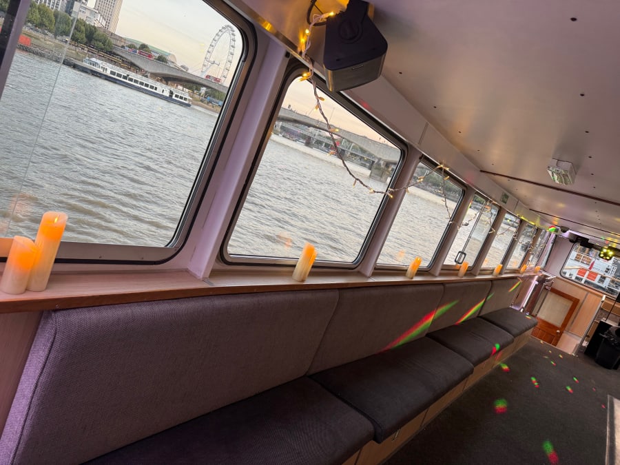 All boats have a bar on each level selling drinks at reasonable pub prices, as well as DJ areas and dance floors to show off your moves. They can also arrange decorations in the form of balloons and rope lighting, or you can come on before the party to decorate yourselves.