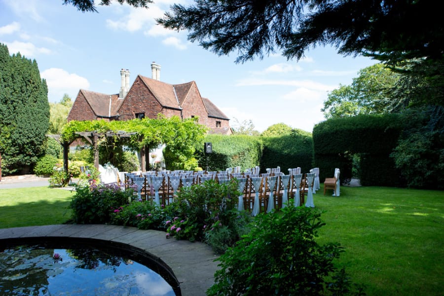 Wedding guests can enjoy fine champagne and canapés by the picturesque lily pond or stroll accross the freshly cut lawns. The romantic stables lined with glowing candles, is perfect for your special vows. For the reception, guests can enjoy drinks in the elegant orangery or in the breathtaking gardens, followed by a delicious wedding breakfast served in the cosy oak beamed barn.