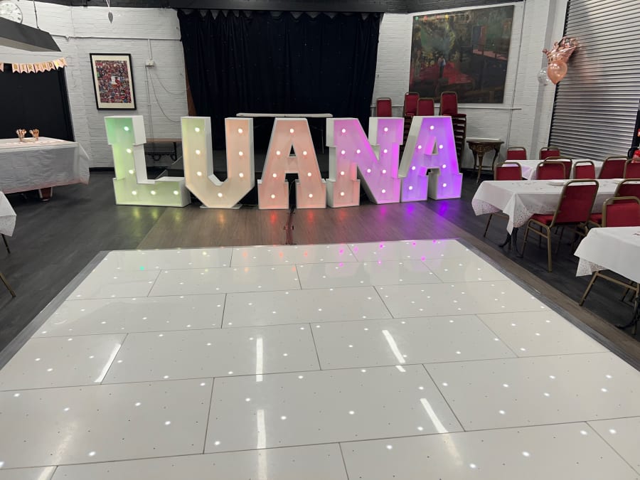 Our quality range of hire items including Photo booths, LED letters and numbers, Bouncy Castles, Soft play sets, LED dance floors and more, are all manufactured to the highest standard ensuring they are 100% compliant with set regulations. All electrical components are PAT tested yearly and we have the necessary insurance documents such as Public Liability Insurance upon request.