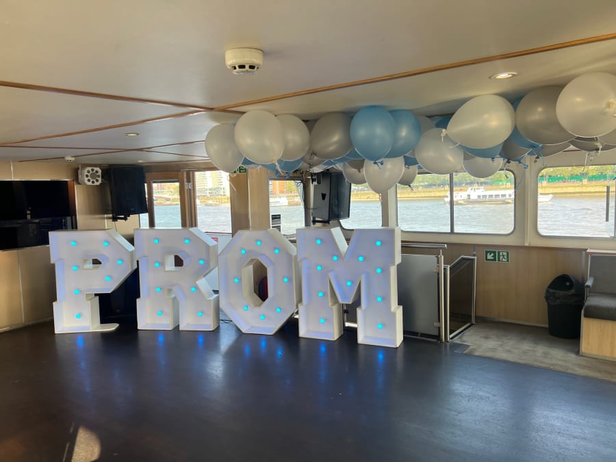 All boats have a bar on each level selling drinks at reasonable pub prices, as well as DJ areas and dance floors to show off your moves. They can also arrange decorations in the form of balloons and rope lighting, or you can come on before the party to decorate yourselves.