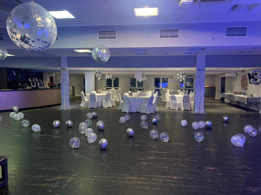 The community club also include the following with your hire: 3 Bar Staff, hall clean up, 15 Round Tables 5ft in diameter, 4 Buffet Tables 6ft length 2.6ft width, 150 Banquet Chairs and two different styles Stage 4.8m x 2.4m.